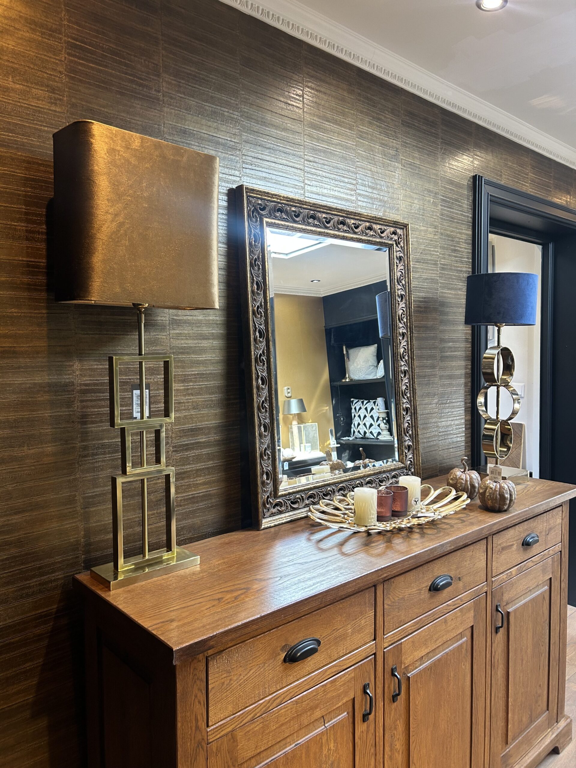 Grote gouden lampenvoet met vierkante vormen