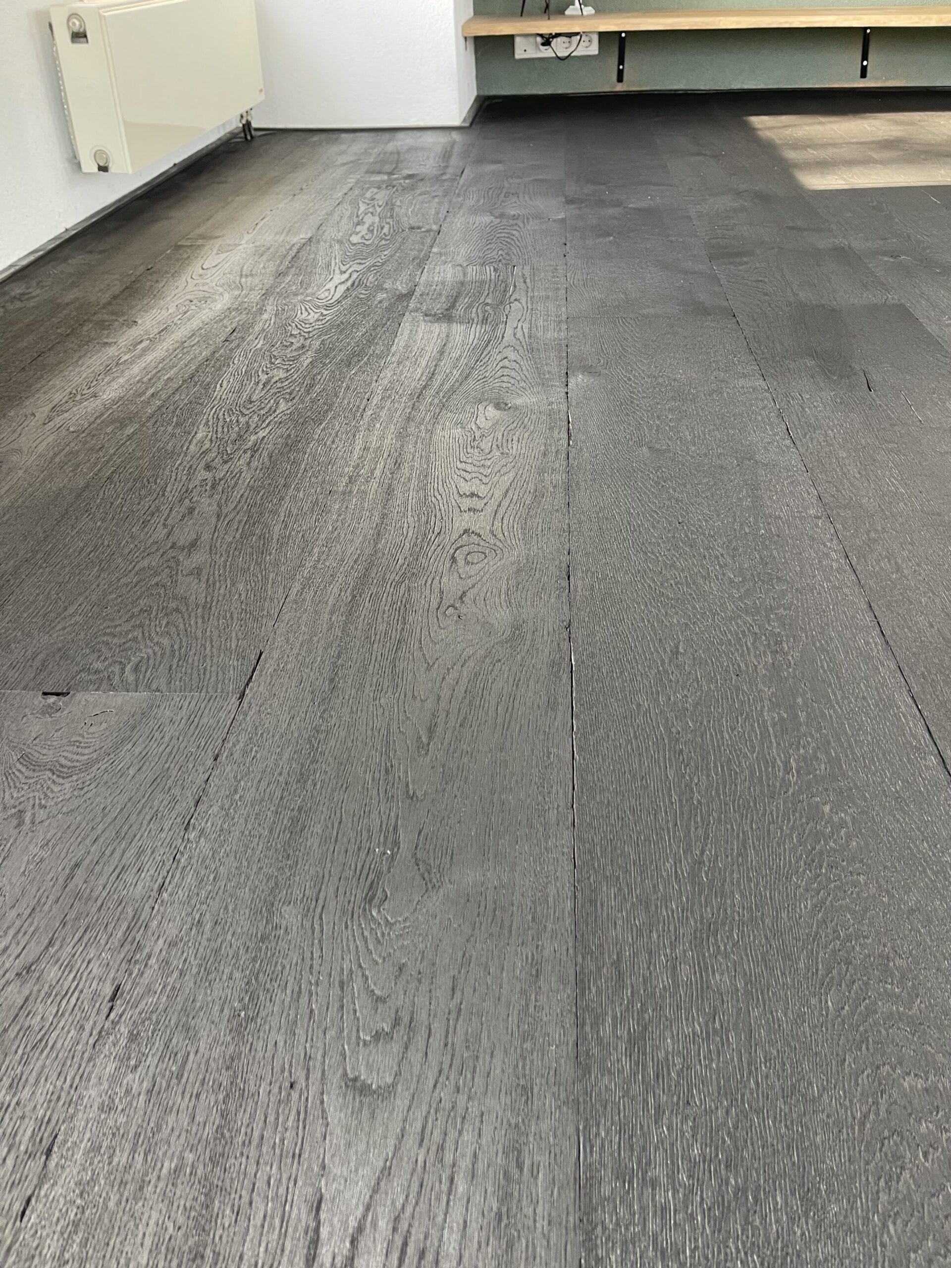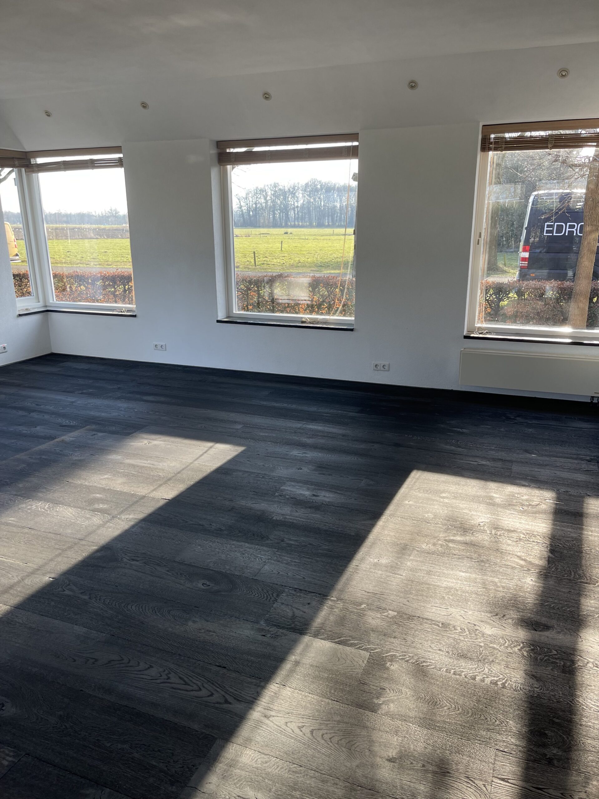 Geef je ruimte een nieuwe uitstraling met onze opgeknapte eiken vloeren de diepe, elegante kleur Charcoal black. De vloer is zorgvuldig vernieuwd, perfect voor bewoners die de klassieke uitstraling van eiken willen combineren meteen moderne twist. Ideaal voor een verfijnde en tijdloze uitstraling die iedere kamer transformeert.” Deze vloer is nieuw door ons te leveren, of heeft u een bestaande vloer ook deze kan door ons worden behandeld.